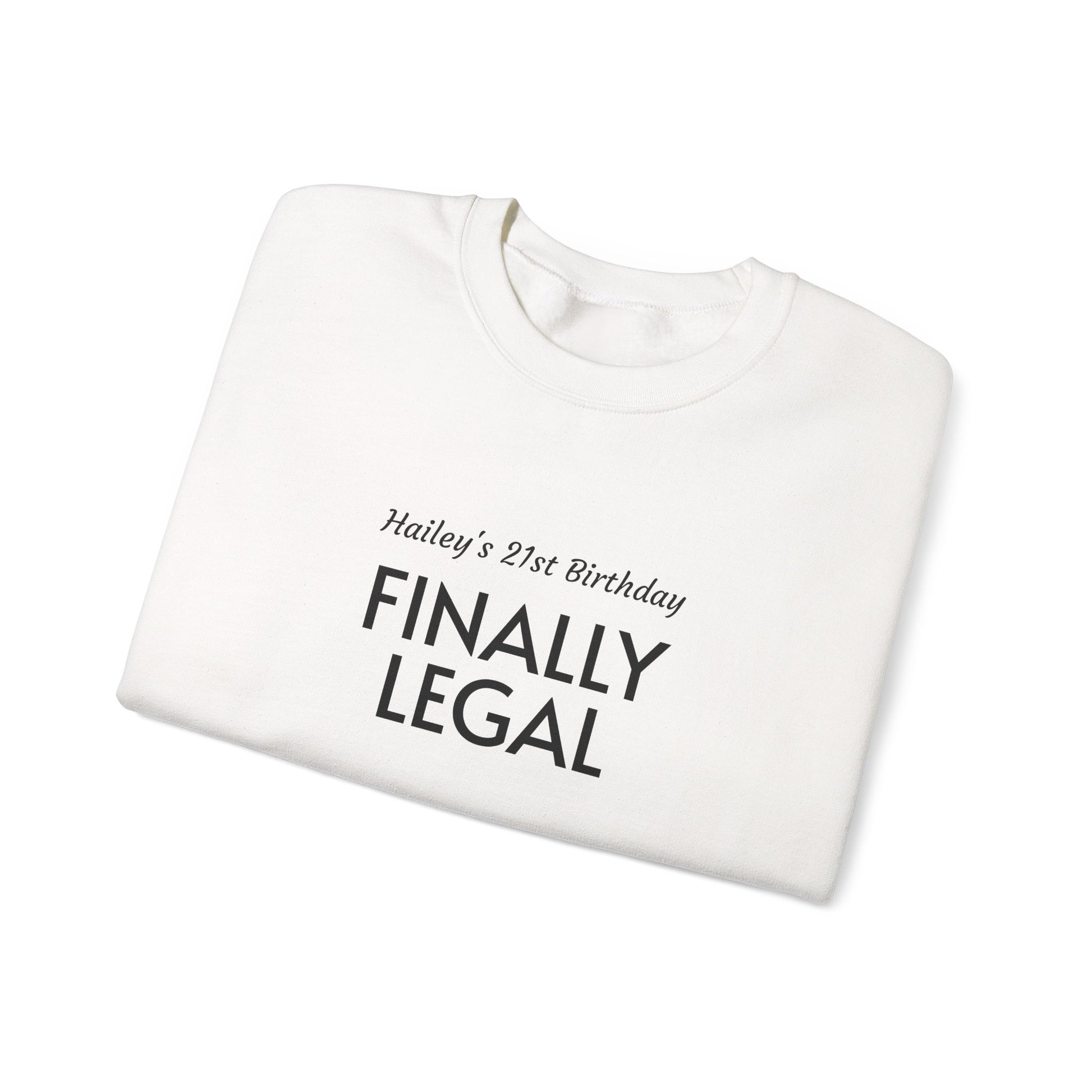 Crewneck Sweatshirt — “Finally Legal” 21st Birthday Personalized Sweatshirt